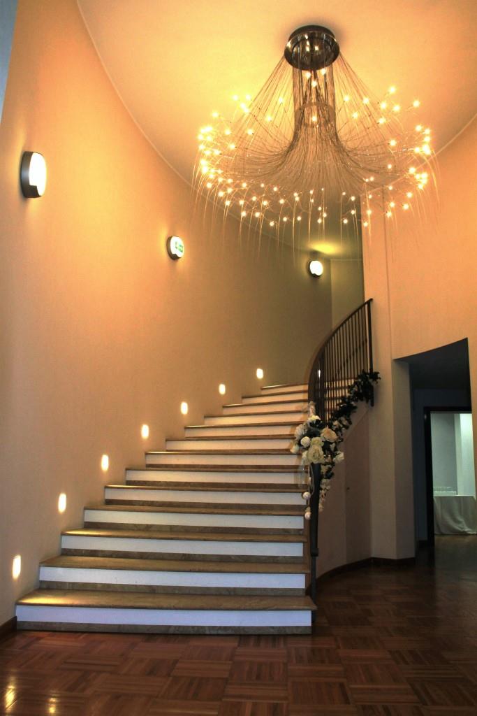 Tutte le luci della sala sono regolabili tramite dimmer e appositamente studiate per dare l'effetto di luce naturale richiesto.